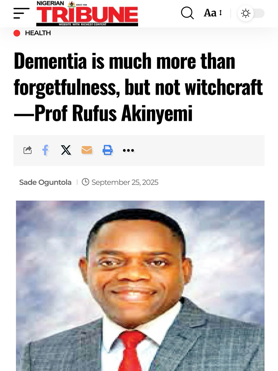 Professor Rufus Akinyemi was interviewed by “Nigerian Tribune” — a widely read newspaper in Nigeria for World Alzheimer’s month.