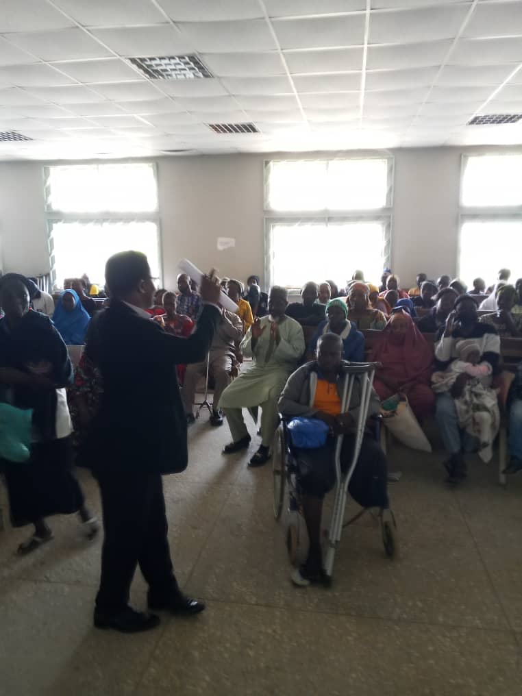 Dr. Godwin Osaigbovo spoke to the patients, caregivers and staff present in the waiting room at Jos University Teaching Hospital, Lamingo, Jos, Plateau State.