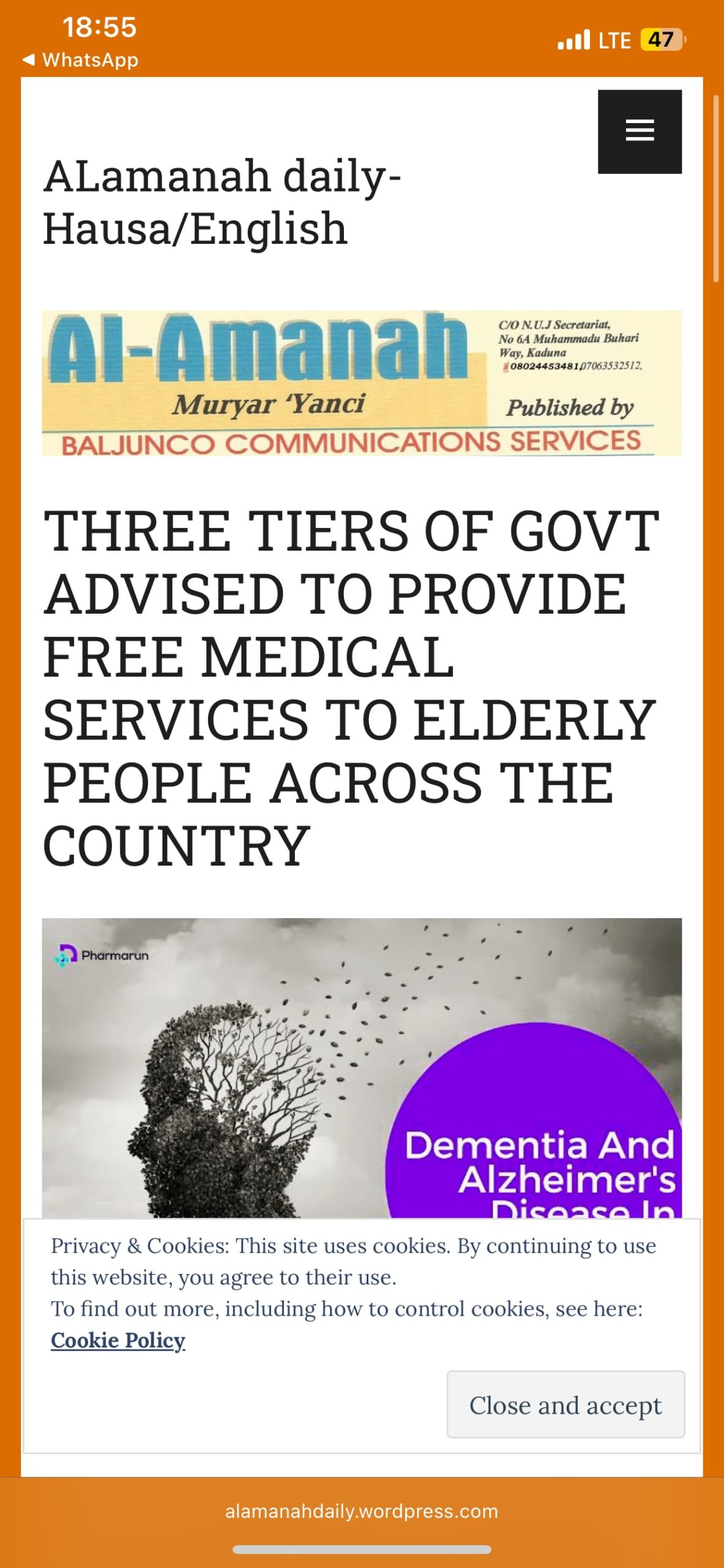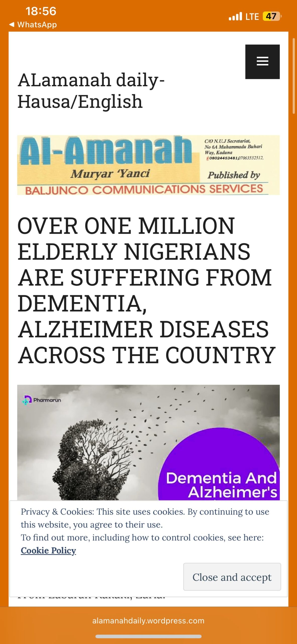 Our Zaria Team was represented by the Professor of medicine, Reginald Obiako, Ahmadu Bello University Teaching hospital Shika, Zaria was interviewed by Alamanah Daily on “What dementia is?” and “Recommendations to the Government in order to tackle this disease”.